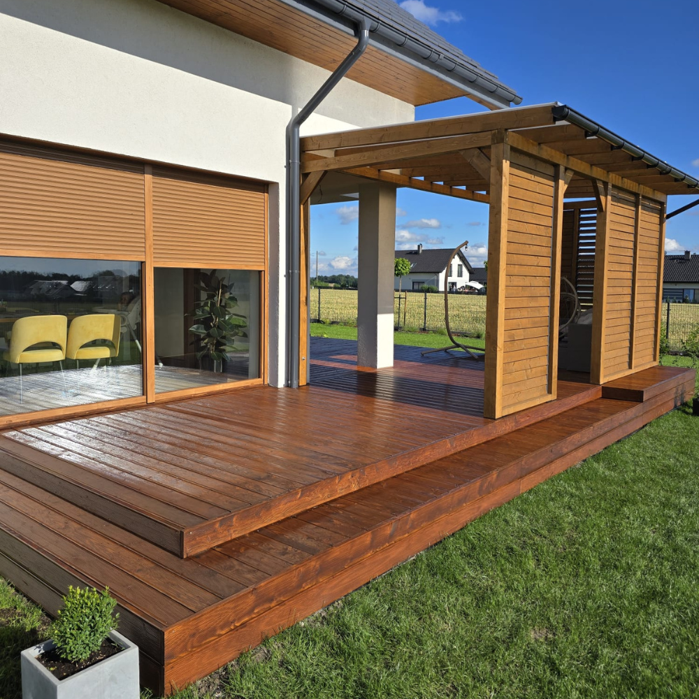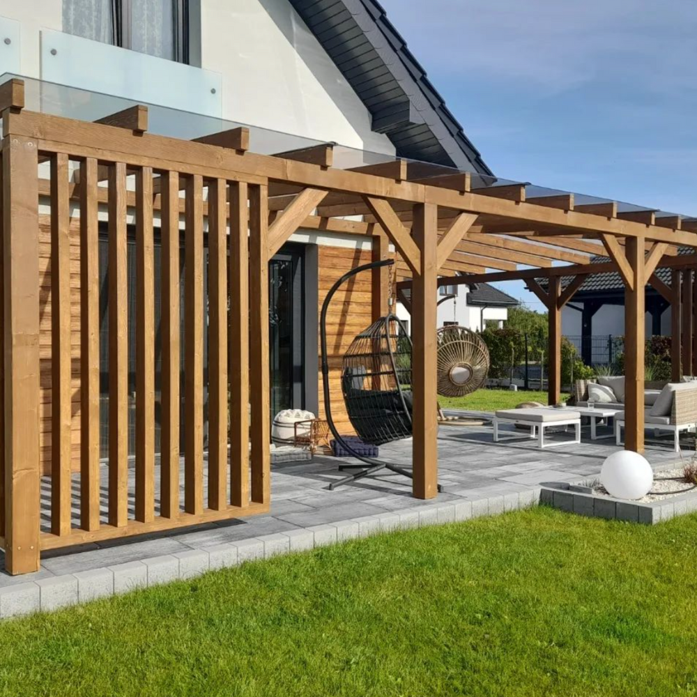 Wykonujemy najwyższej klasy nowoczesne pergole ogrodowe, zadaszenia tarasów, car porty, patio oraz tarasy drewniane.